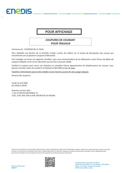 13/03/2026 : ENEDIS Coupure de courant pour travaux